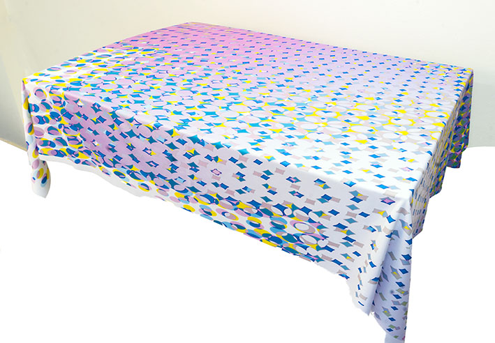 Rozměr 106 x 150 cm. Ubrus je zaobrouben. Materiál NORO 250 gr, 100% PES.
